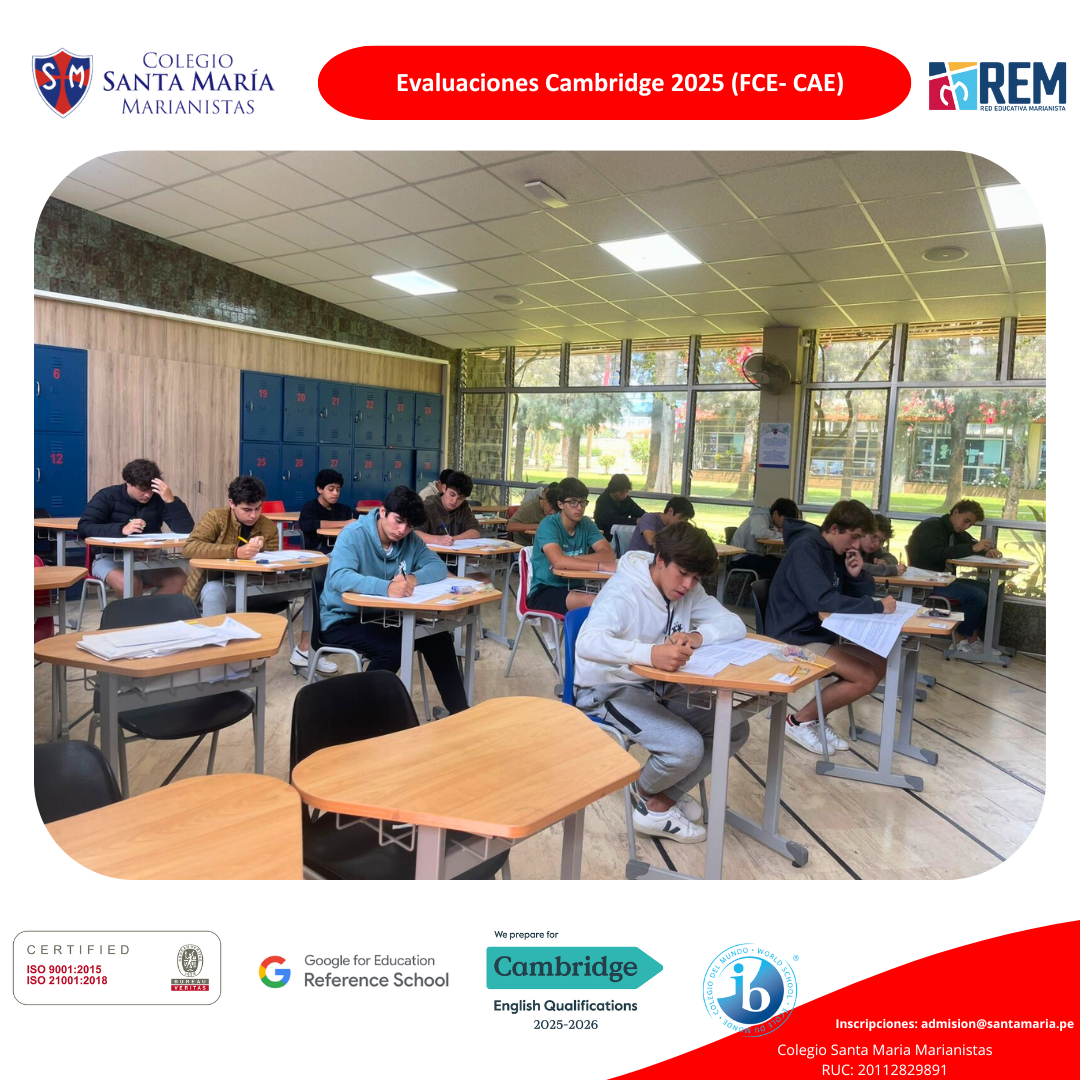 Estamos llenos de orgullo al anunciar que el pasado jueves y sábado, un grupo selecto de nuestros estudiantes de III y IV año rindieron por primera vez las evaluaciones FCE (First Certificate in English) y CAE (Certificate in Advanced English) de Cambridge.